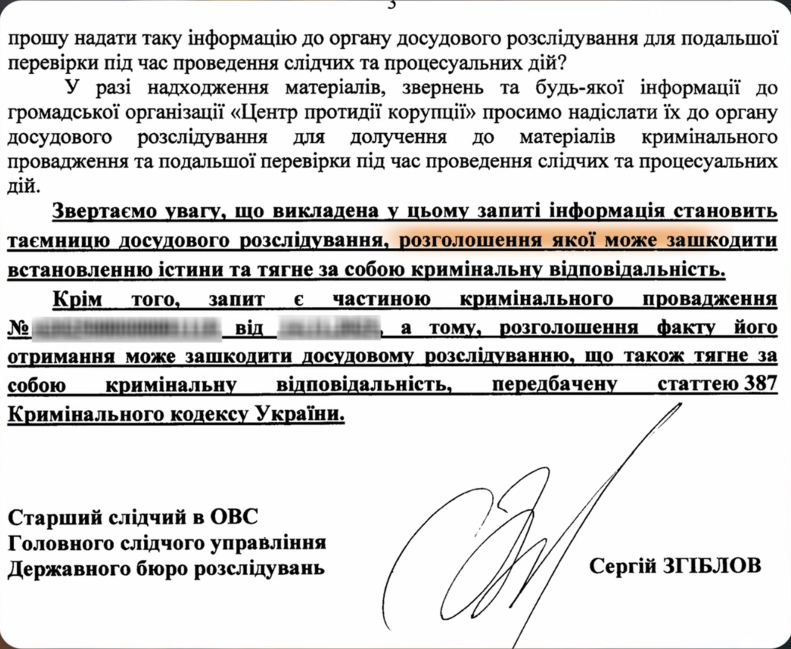 Виконавча директорка Центру протидії корупції Дарʼя Каленюк після публікації розслідування про Сухачова отримала лист з погрозами від ДБР