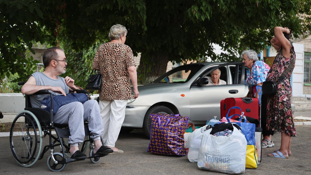 Жителі мікрорайону Корабел після евакуації. “Суспільне. Херсон” Олександр Корняков“Триває евакуація з мікрорайону Корабел. За (9 серпня. – Ред.) станом на 18:00 було вивезено 125 людей. З них – 9 маломобільних громадян”, – йдеться у повідомленні.