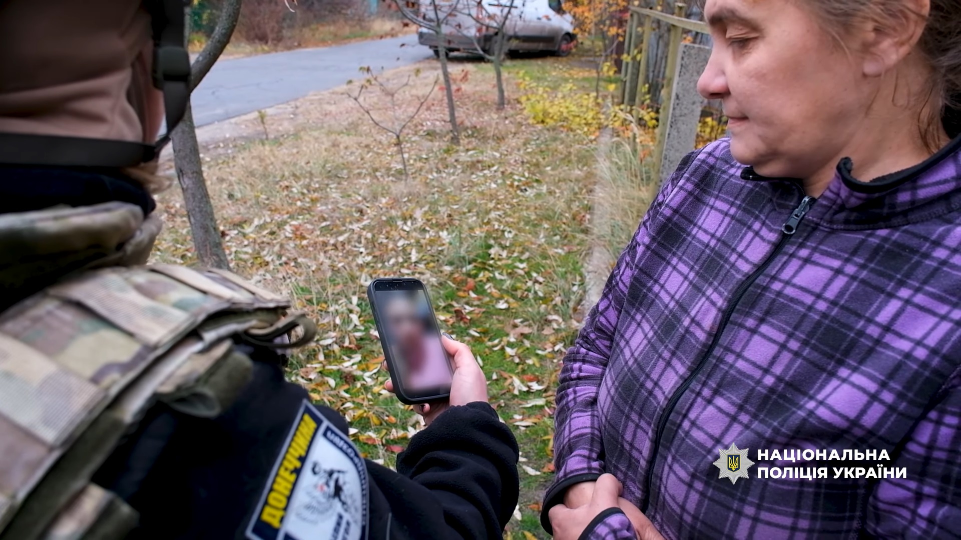 Поліціянтка показує відео від рідних жінки, які просять ту евакуюватися з небезпеки, Скриншот відеоНагадаємо, що на Донеччині троє людей ішли 12 кілометрів під обстрілами, щоб не опинитися в російській окупації.