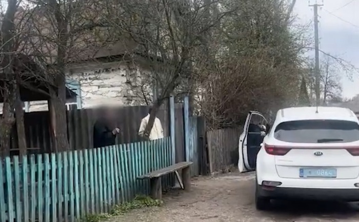 Поліціянти спілкуються з мешканцями прикордонного села. Скриншот відео Нацполіції