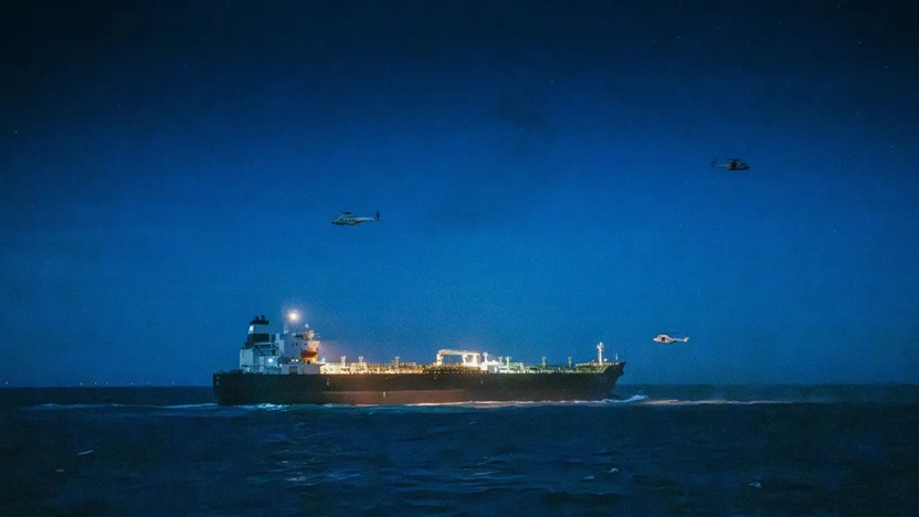 Момент захоплення танкера. Джерело: La Défense – JORN URBAINВін наголосив на тому, що важливо модернізувати європейське законодавство, щоб танкери, які перевозять російську нафту, не просто зупиняли, а конфісковували, а їхню нафту “використовували для забезпечення безпеки Європи”.