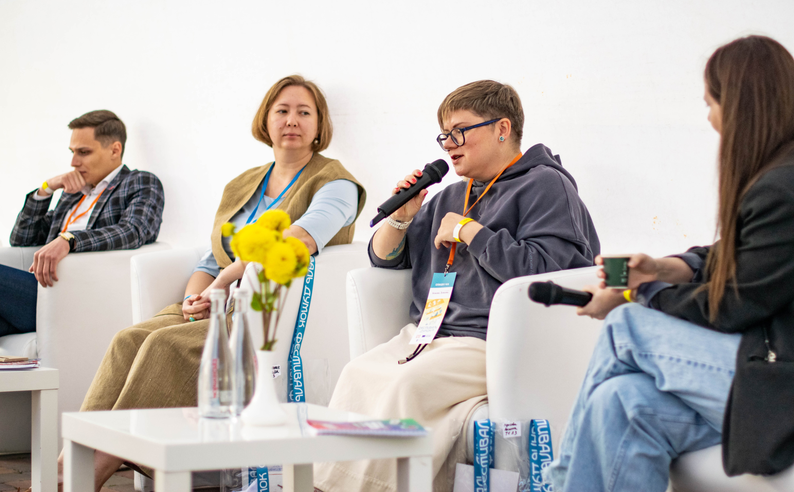 Слухач Фестивалю думок. Фото: Юлія Кузьменко / ZMINA“Можливо, є сенс державі подивитися на людей в окупації не як на зону ризику, а як на зону зростання і допомоги нашій державі вистояти й вижити”, – зауважила правозахисниця і додала, що слід заохочувати таких людей лишатися з Україною, виїжджати на підконтрольну їй територію, водночас не влаштовувати “фільтрацію, тільки вже з нашого боку”.