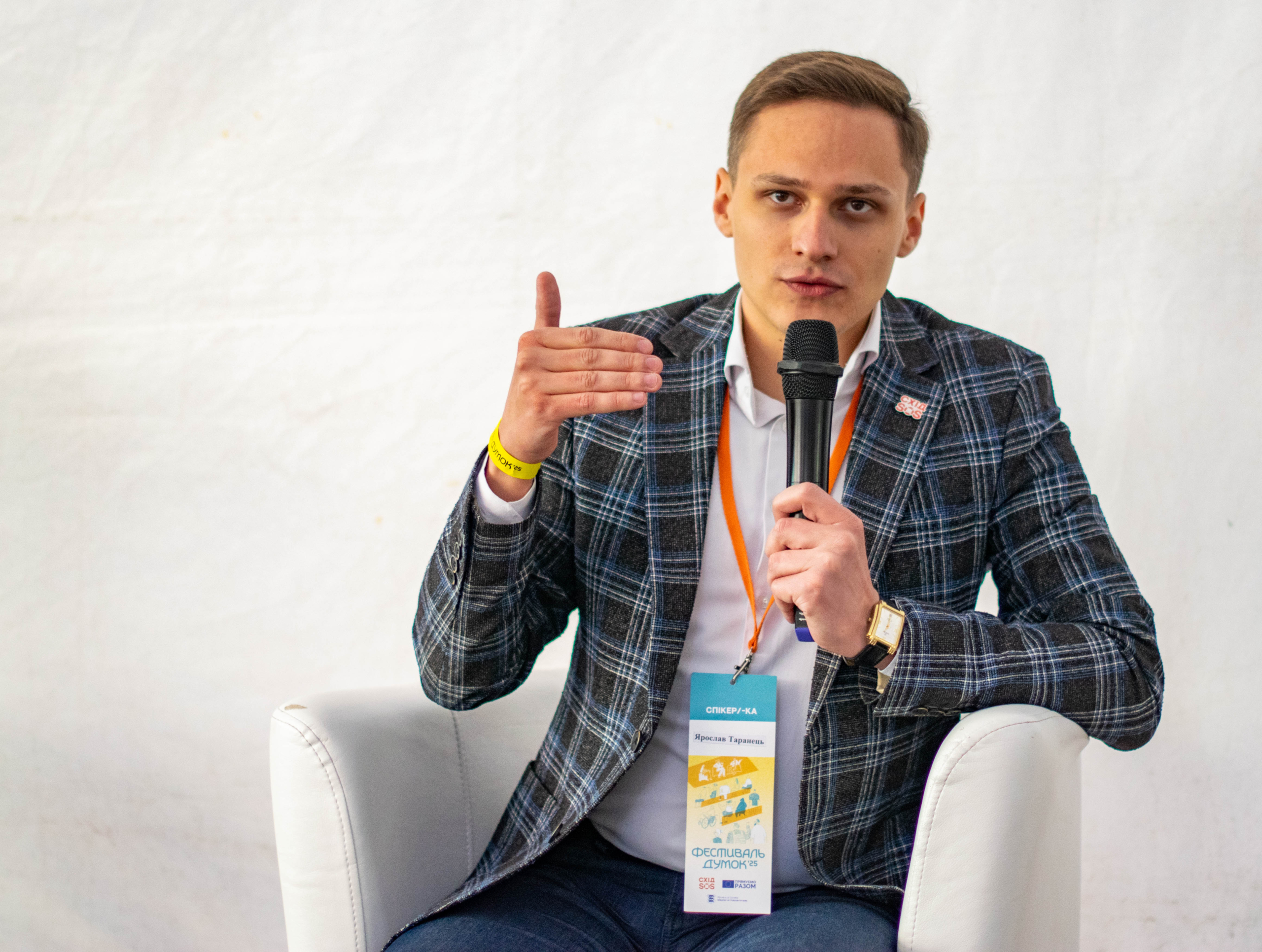 Ярослав Таранець на дискусії Фестивалю думок. Фото: Юлія Кузьменко / ZMINAРосія хоче замінити українську ідентичність на сприйняття в дітей себе як громадян РФ. Діти добровільно чи примусово залучаються до мілітаристських рухів, громадських об’єднань, як-от “Рух перших”, “Юнармія”, “Орлятко”.