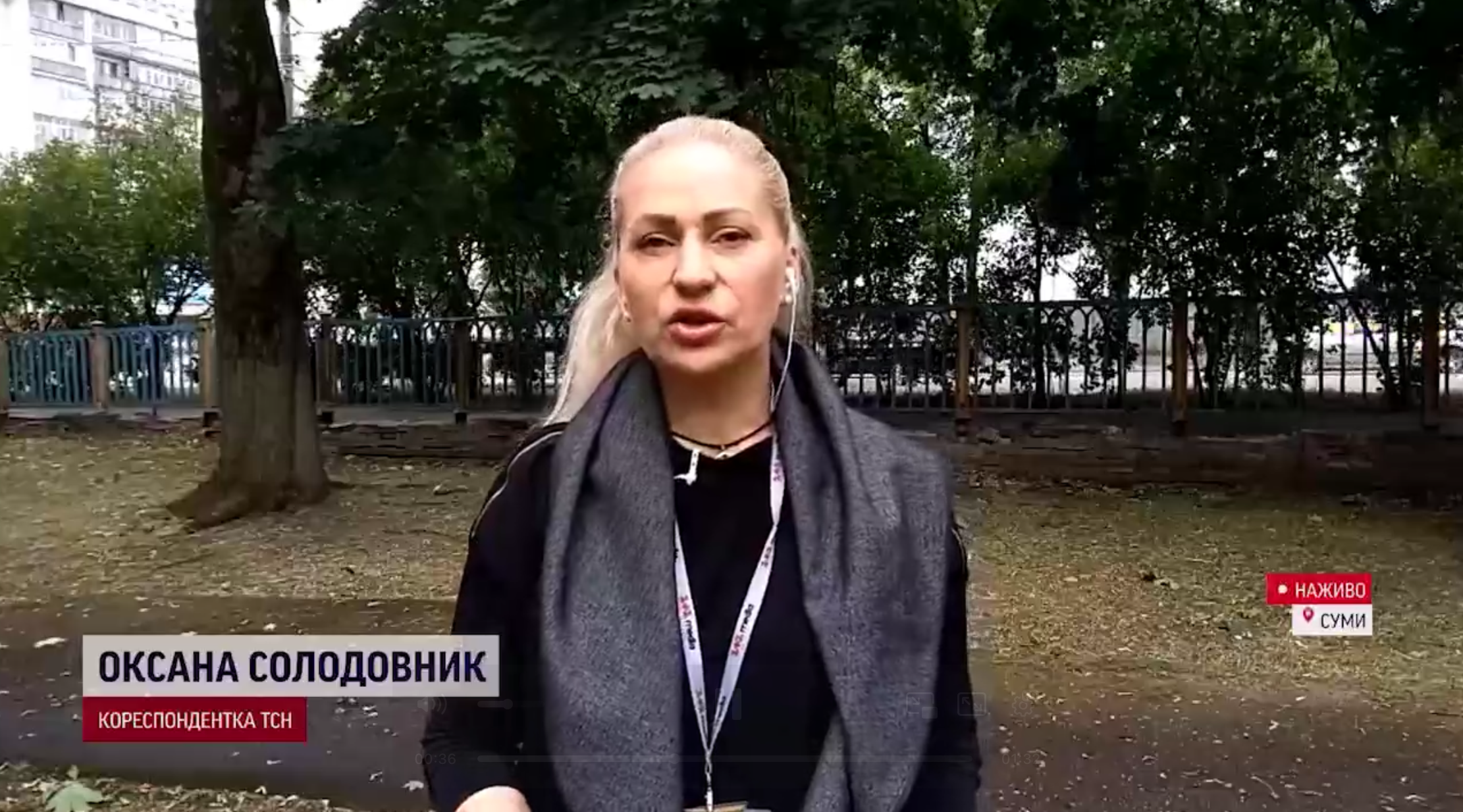 У Сумах знімальній групі ТСН телеканалу 1+1 довелося перервати пряме ввімкнення в студії через російський обстріл міста.