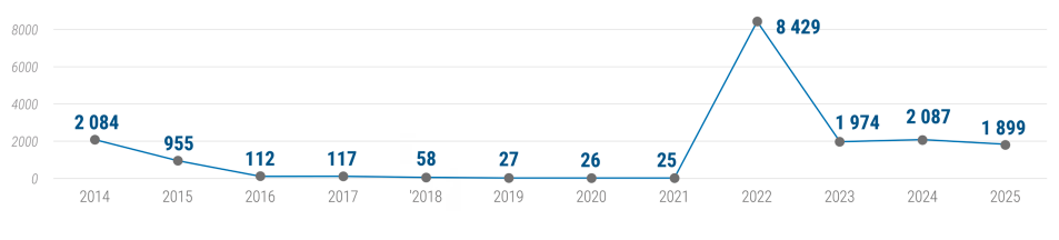 Число погибших из-за российской агрессии в Украине с 2014 года. Инфографика из отчета Мониторинговой миссии ООН по правам человека в УкраинеНапомним, что прошлый год в Украине закончился общим 30% увеличением погибших, а количество детских смертей увеличилось вполовину. До этого так много детей гибло только в первые месяцы полномасштабного вторжения.