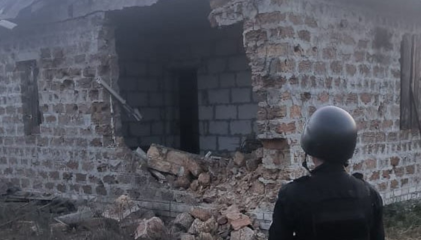 Полицейский осматривает изуродованный частный дом, поврежденный одним из российских обстрелов в Донецкой области за сутки 27 июля 2025 года. Фото: НацполицияВ Херсонской области за сутки по меньшей мере один человек пострадал из-за подрыва на российской мине. Причиной взрыва стала так называемая мина-лепесток.