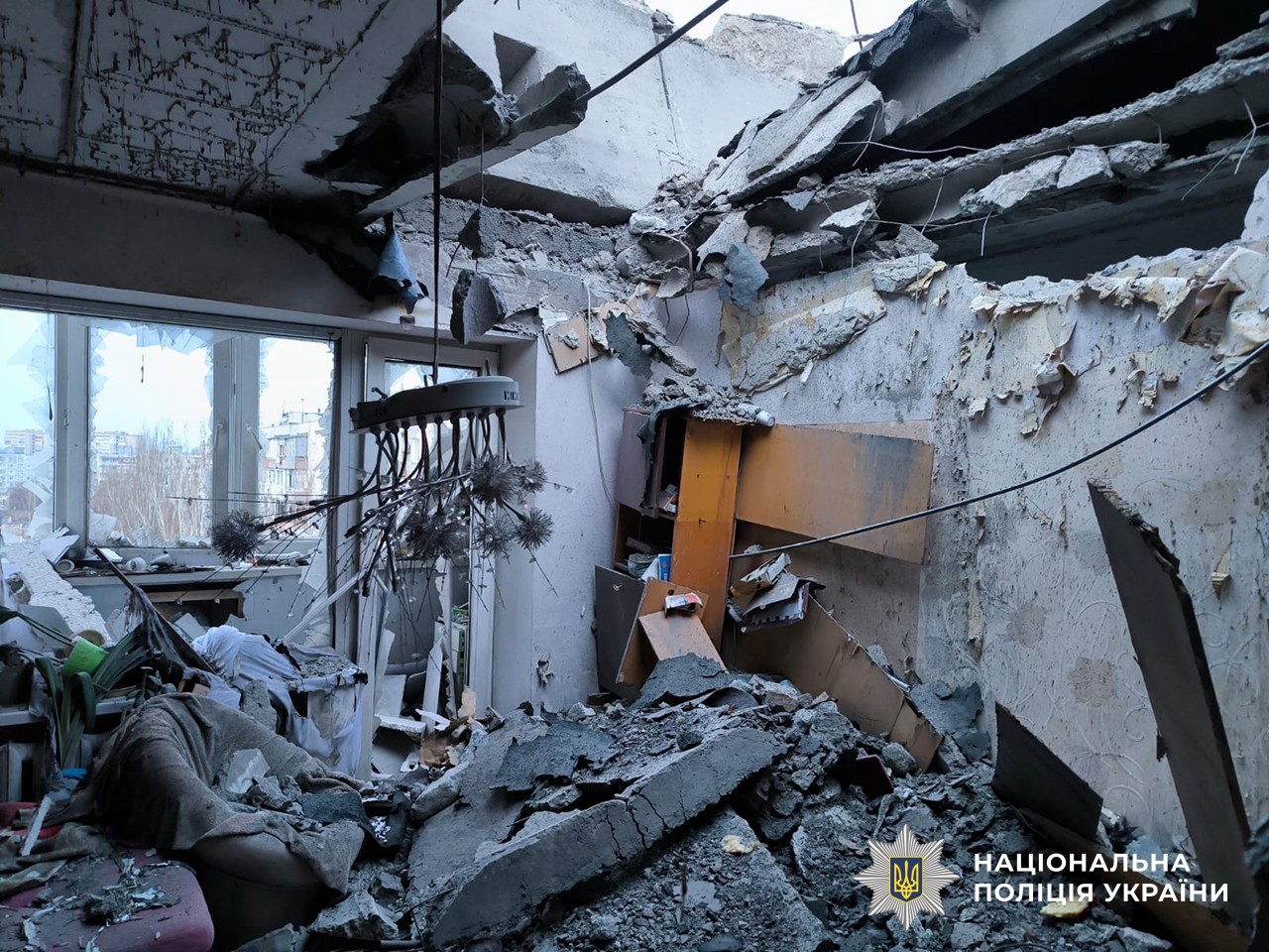 Разрушенная российским ударом квартира в доме в ЗапорожьеЖертвами российских ударов вчера стали: