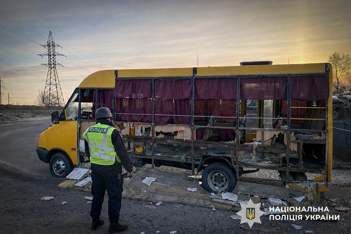 Полицейский смотрит на гражданский автобус, обстрелянный российскими военными в Сумской областиНапомним, что за сутки 23 марта российские военные ударами убили двух человек в Украине, а за более чем четыре года большой войны – более 15 тысяч только гражданских.